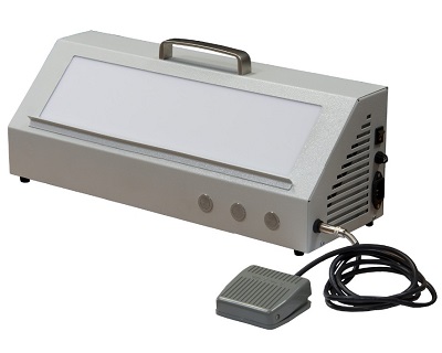 - Удобство применения. Большинство моделей негатоскопов оснащаются своеобразной педалью для включения оборудования. С ее помощью можно регулировать процесс включения ламп. Плавный запуск снижает уровень нагрузки на глаза оператора, делая диагностику снимков максимально комфортной.