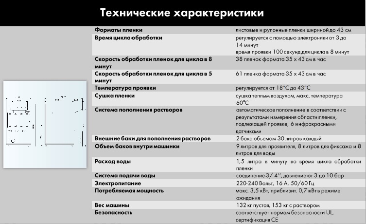 - Подогрев баков с проявителем и фиксажем осуществляется независимыми системами.