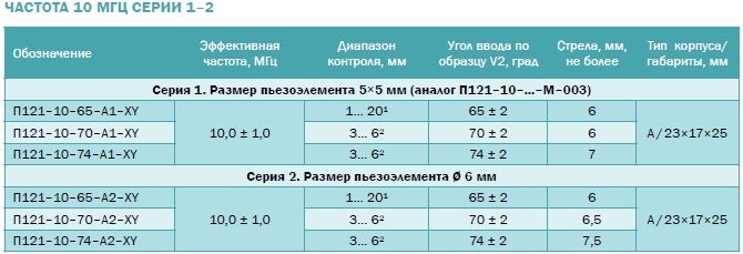 Преобразователи наклонные контактные совмещенные типа П121 (частота 10 МГц серии 1–2)