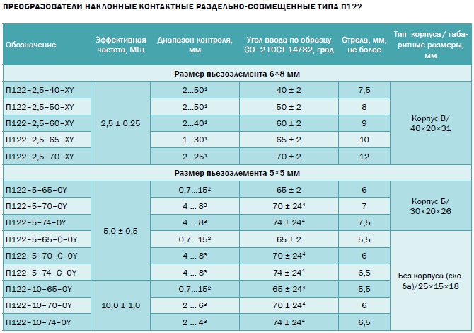 Преобразователи наклонные контактные раздельно-совмещенные типа П122