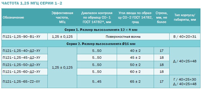 Преобразователи наклонные контактные совмещенные типа П121 (частота 1,25 МГц серии 1–2)