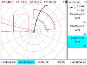 Диапазон регулировки усиления от 0 до 70 дБ, с шагом 0.1, 1, 2, 6 и 10 дБ