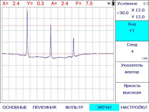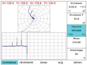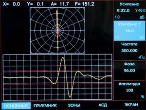 • Одновременное отображение сигнала на экране дефектоскопа в амплитудно-временной и  комплексной плоскостях.